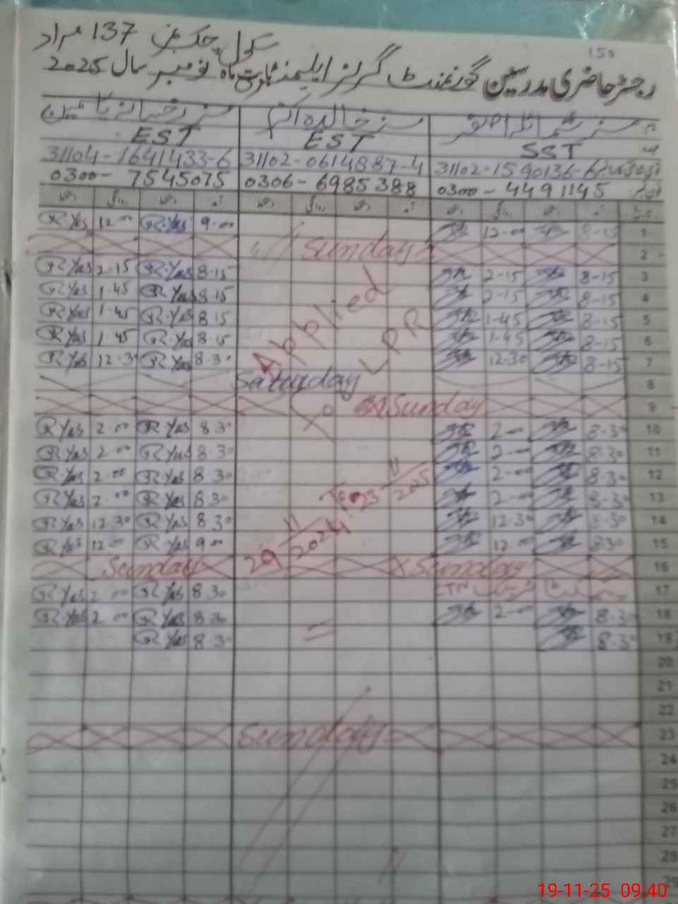 | Name: SH**** AS**** Designation: (School Headmaster's/Headmistress's) S.s T Arts Phone/Cell Number: 03**** |