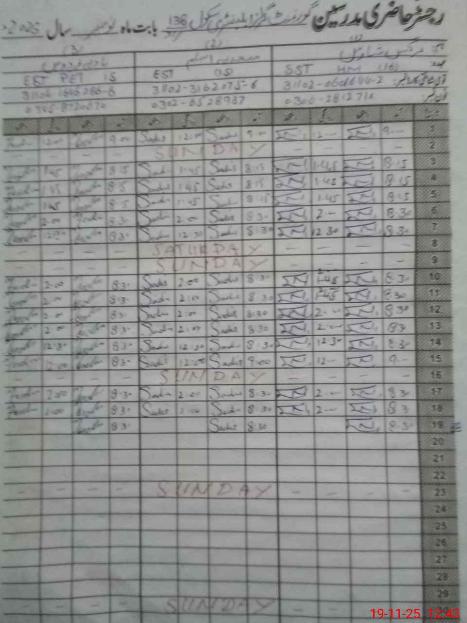 | Name: Na**** Sh**** Designation: (School Headmaster's/Headmistress's) SST Phone/Cell Number: 03**** |