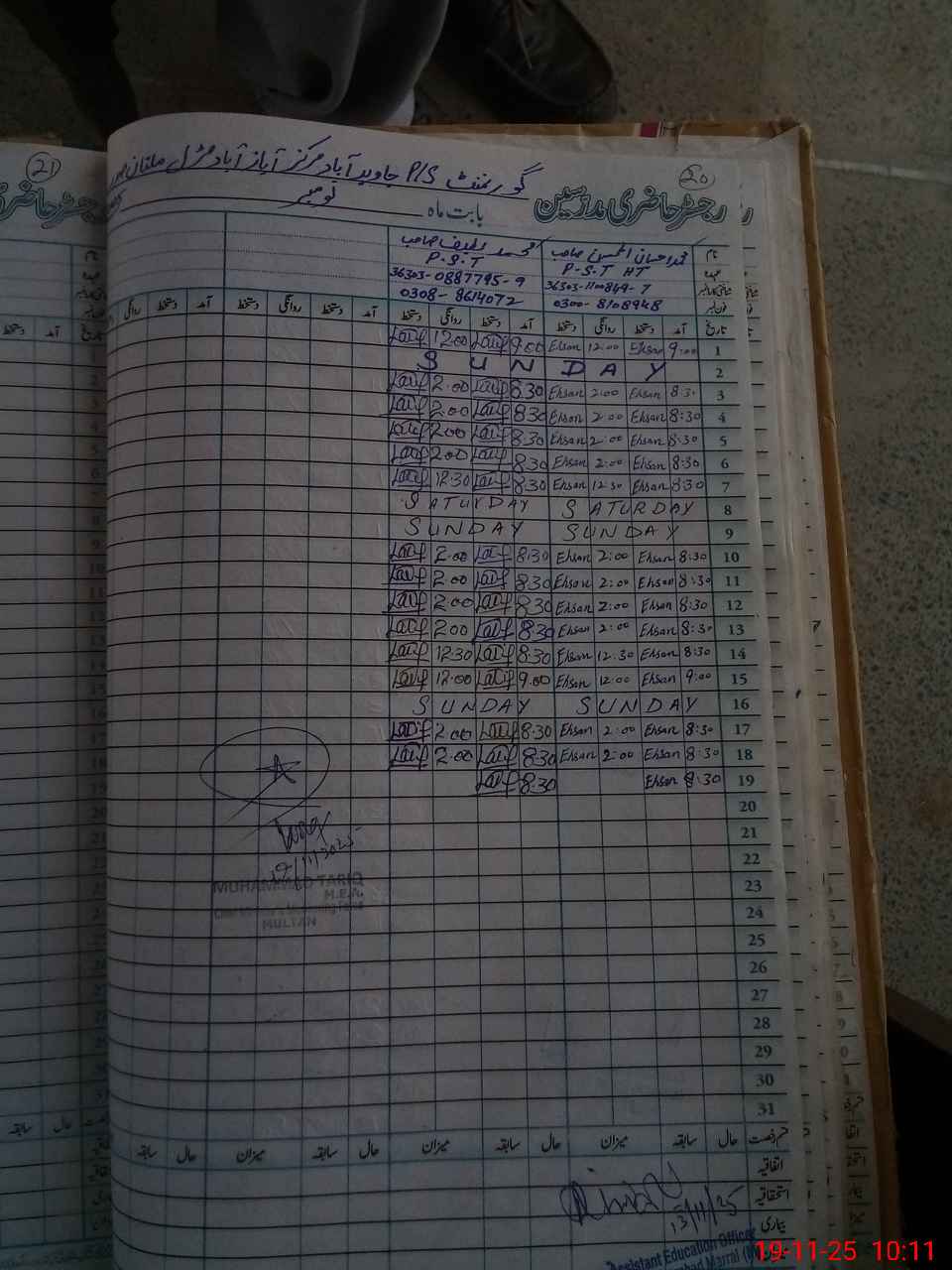 | Name: MIh**** UlMo**** Designation: (School Headmaster's/Headmistress's) PST HEAD. TEACHER Phone/Cell Number: 03**** |