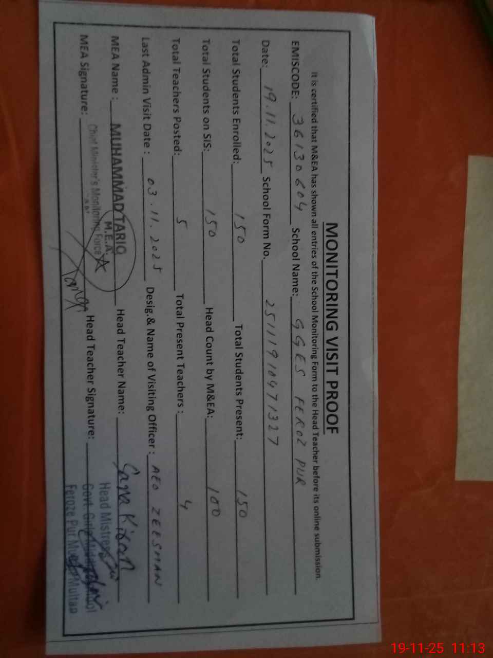 | EMIS Code: 36130604 | Name of School: GGES FEROZ PUR MULTAN | |||