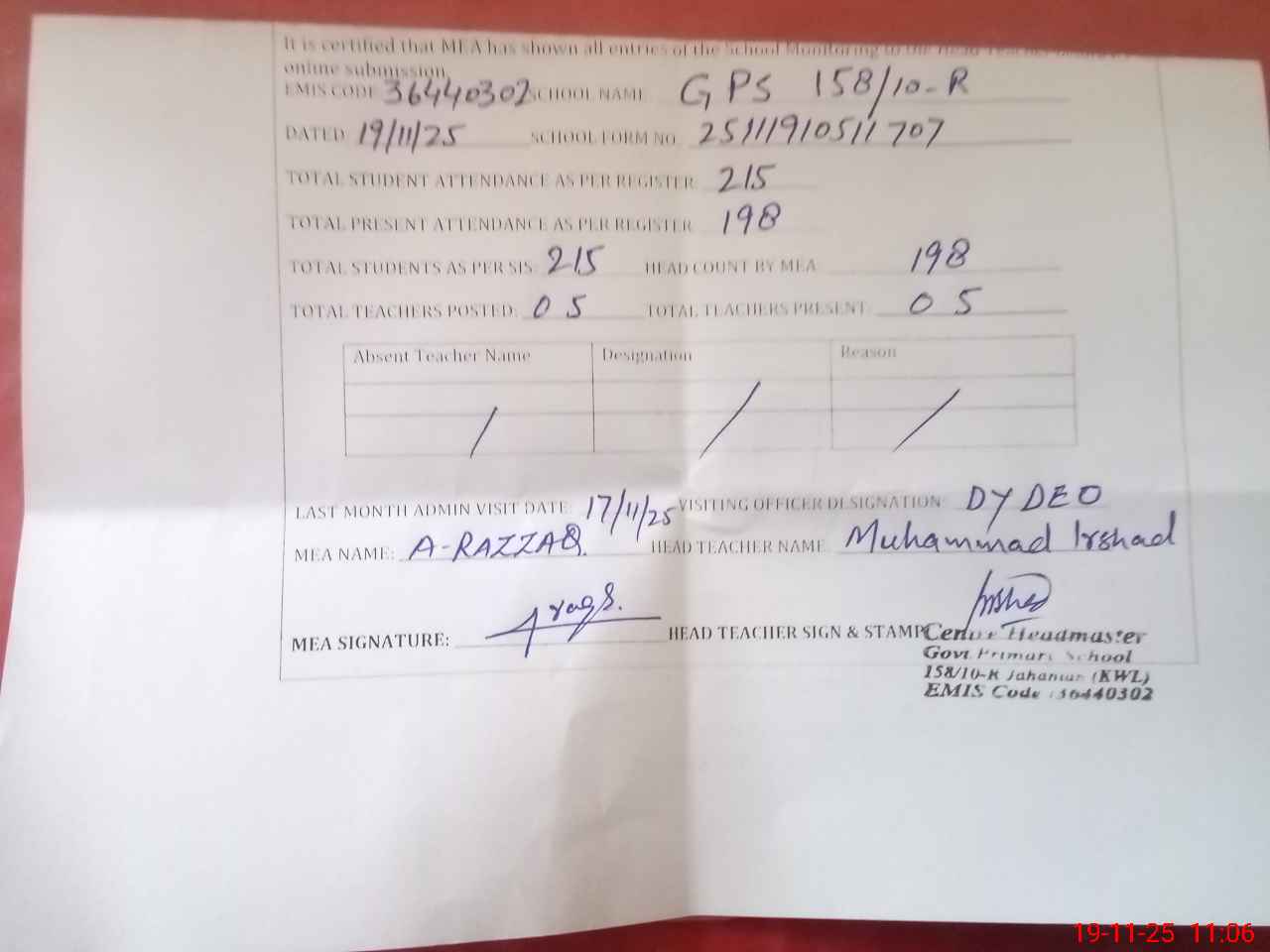 | EMIS Code: 36440302 | Name of School: GPS 158/10-R, JAHANIAN | |||