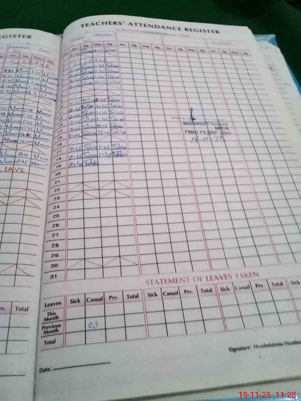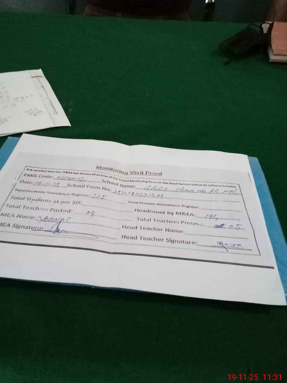| Attendance Register | Head Teacher | MEA with School | Visit Proof |