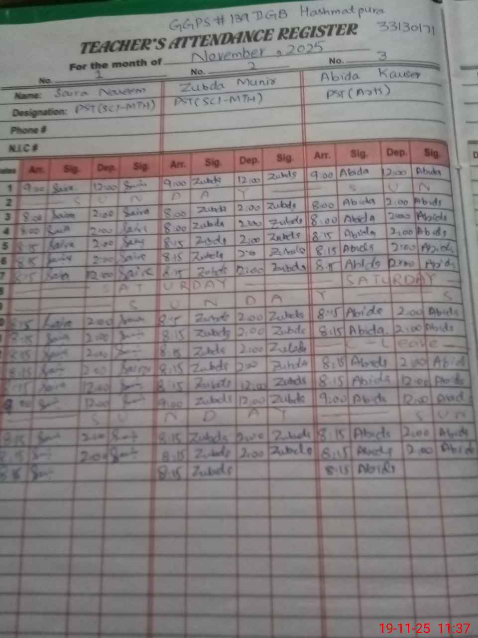 | Name: SA**** NA**** Designation: (School Headmaster's/Headmistress's) PST Phone/Cell Number: 03**** |