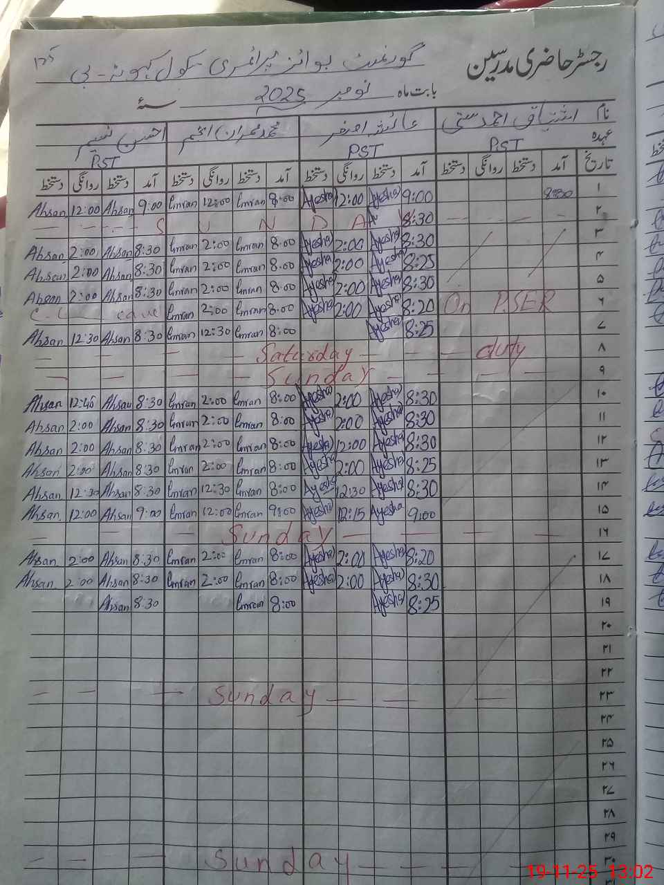 | CNIC | Full Name | Designation | R/C | Absence During Last Calender Month |