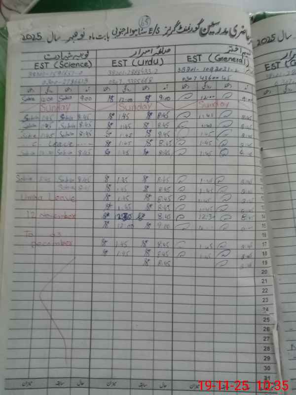 | Name: ZA**** BI**** Designation: (School Headmaster's/Headmistress's) PST Phone/Cell Number: 03**** |