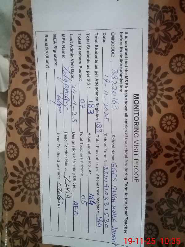 | EMIS Code: 38220163 | Name of School: GGES SHAH WALA JANUBI | |||