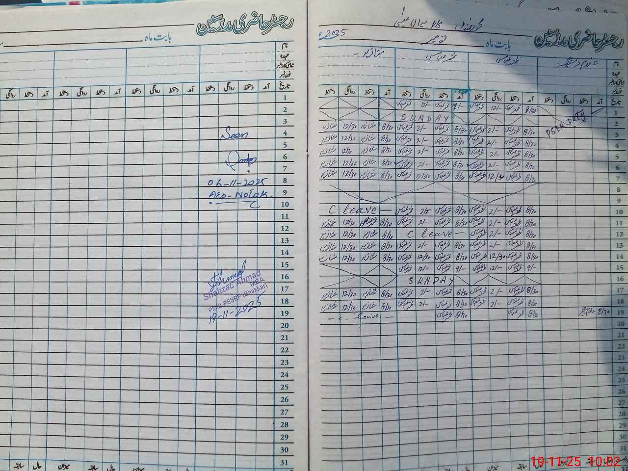 | Remarks (Use Separate Page if Required): Last visit Naeem Ullah Farooqi AEO 06 November 2025 | |||||