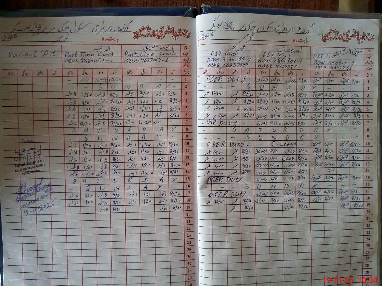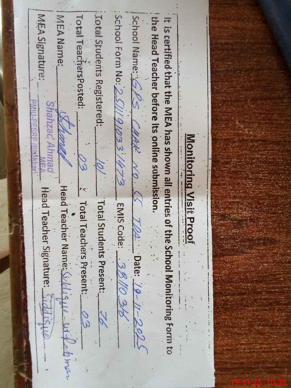 | Remarks (Use Separate Page if Required): Last visit Iqbal Hussain AEO 12 November 2025 | |||||