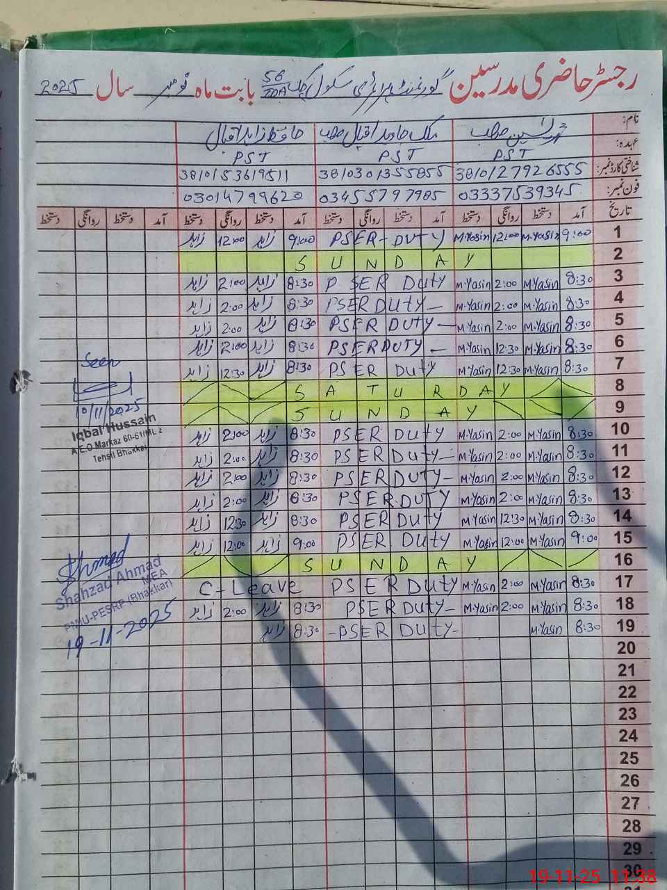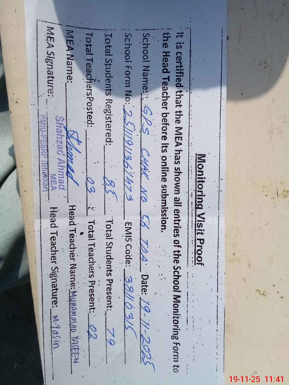 | Remarks (Use Separate Page if Required): Last visit Iqbal Hussain AEO 10 November 2025 | |||||