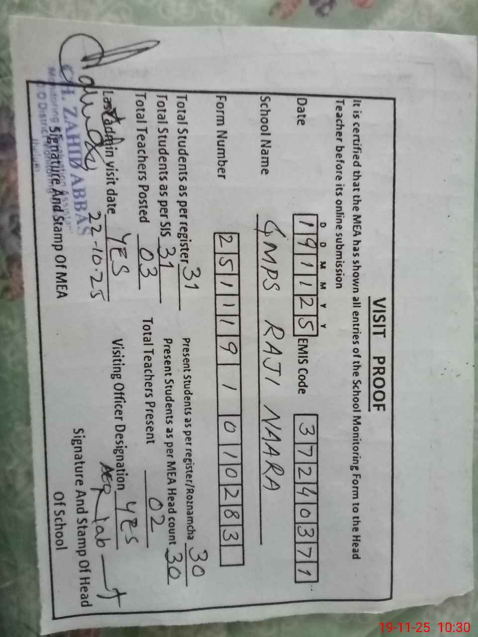 | Certified that this School was Inspected by the Undersigned MEA/DMO Today and the Information Stated Above is as Per Record. | |||||