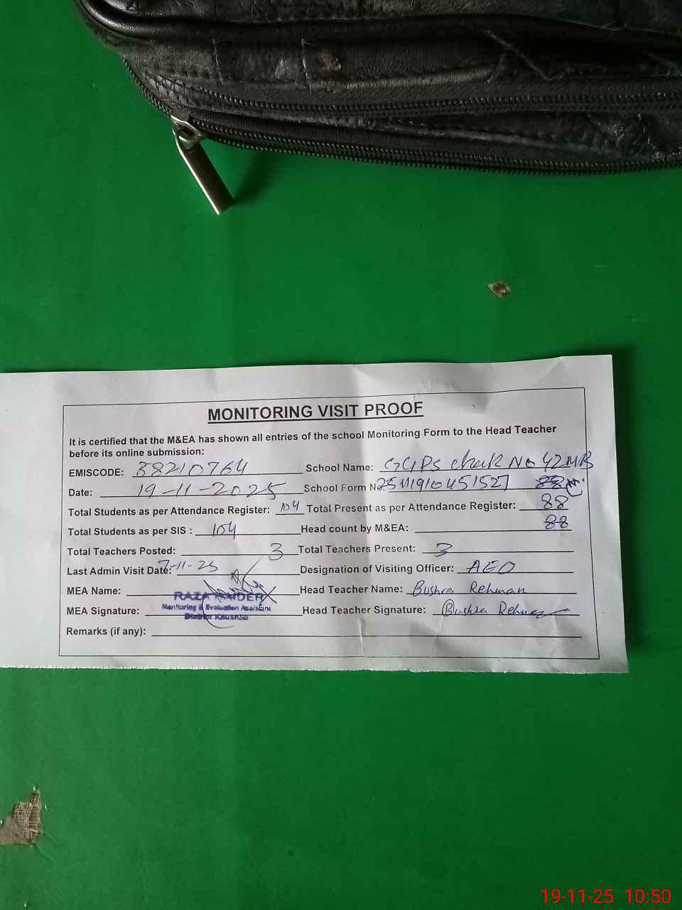 | EMIS Code: 38210764 | Name of School: GGPS CHAK NO 42 MB | |||