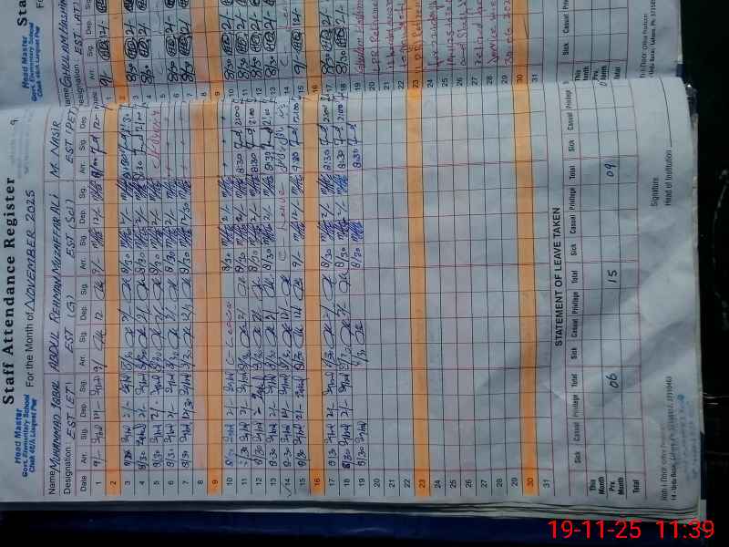 | CNIC | Full Name | Designation | R/C | Absence During Last Calender Month |
