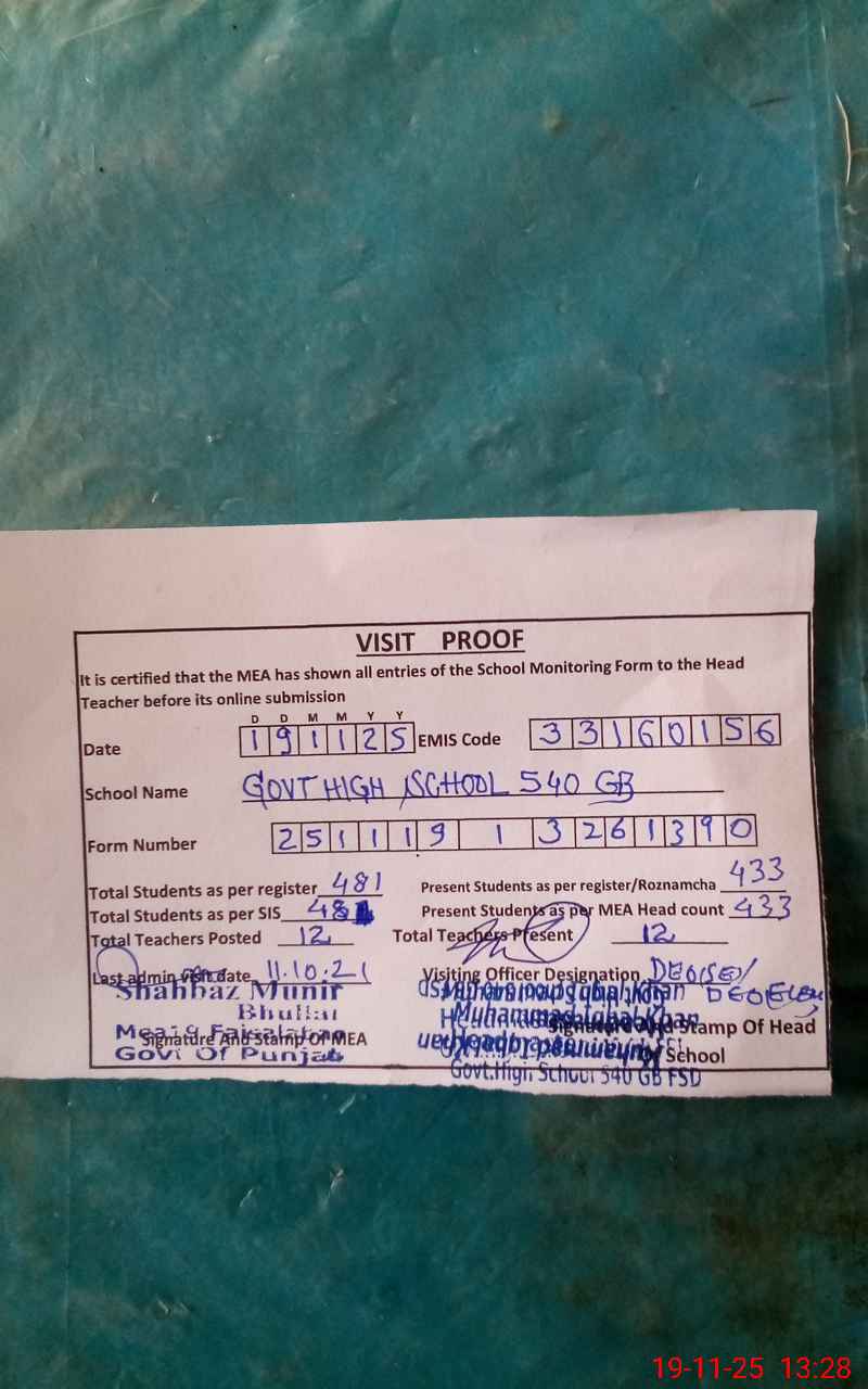 | EMIS Code: 33160156 | Name of School: GHS 540 GB | |||