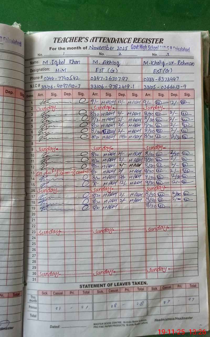 | Name: MU**** IQ**** KH**** Designation: (School Headmaster's/Headmistress's) HEAD MASTER Phone/Cell Number: 03**** |