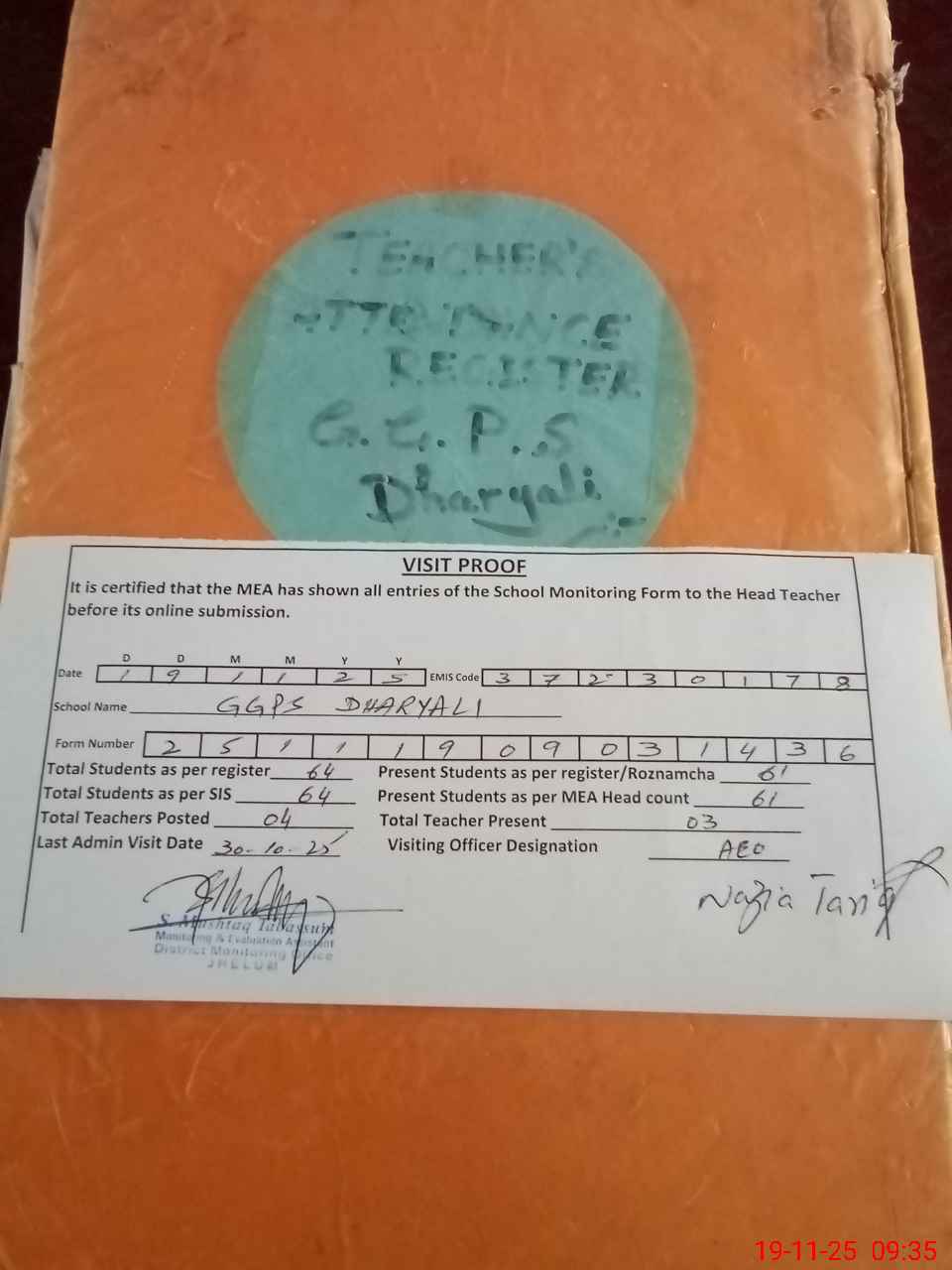 | EMIS Code: 37230178 | Name of School: GGPS DHARYALI | |||