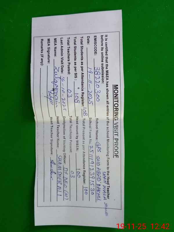 | EMIS Code: 38220300 | Name of School: GPS SAIDABAD DAKHLI SHAH WALA JANUBI | |||