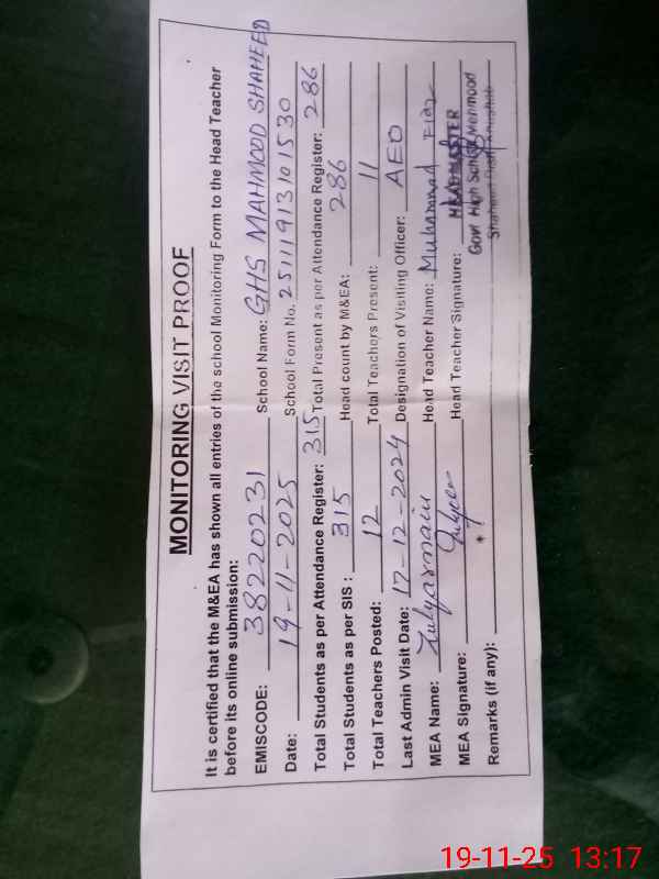 | EMIS Code: 38220231 | Name of School: GHS MAHMOOD SHAHEED | |||