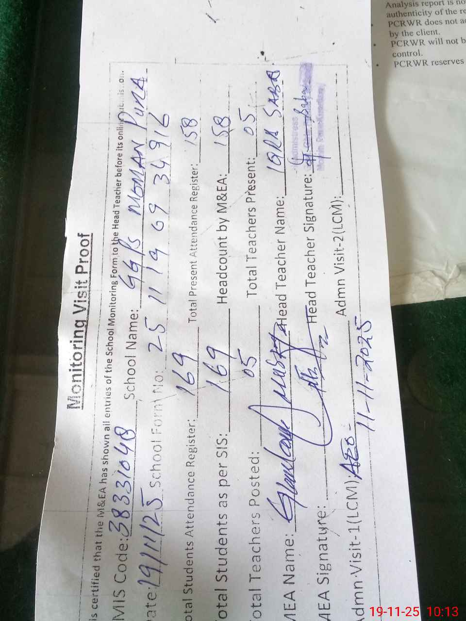 | Monitoring Date: 19-11-2025 | Start Time: 19-11-2025 09:32 AM | End Time: 19-11-2025 10:21 AM | Name of MEA: Gh**** Mu**** | |