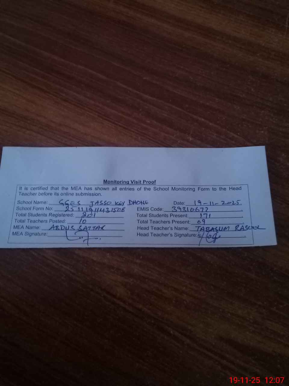 | EMIS Code: 39310672 | Name of School: GGES JASSO KEY DHON | |||
