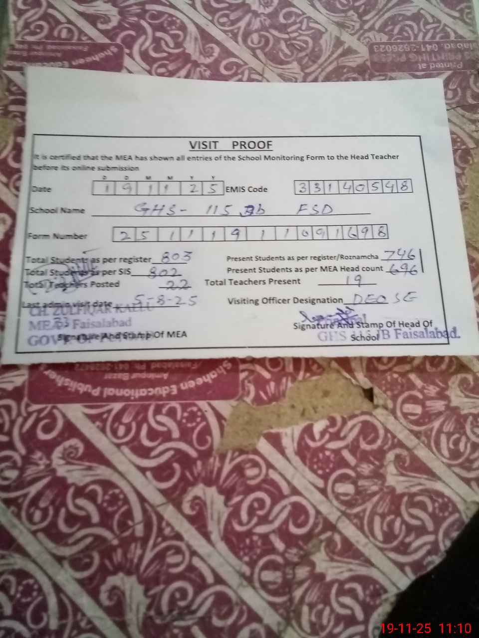 | EMIS Code: 33140548 | Name of School: GHS CHAK 115 JB DIAL GARH FSD | |||
