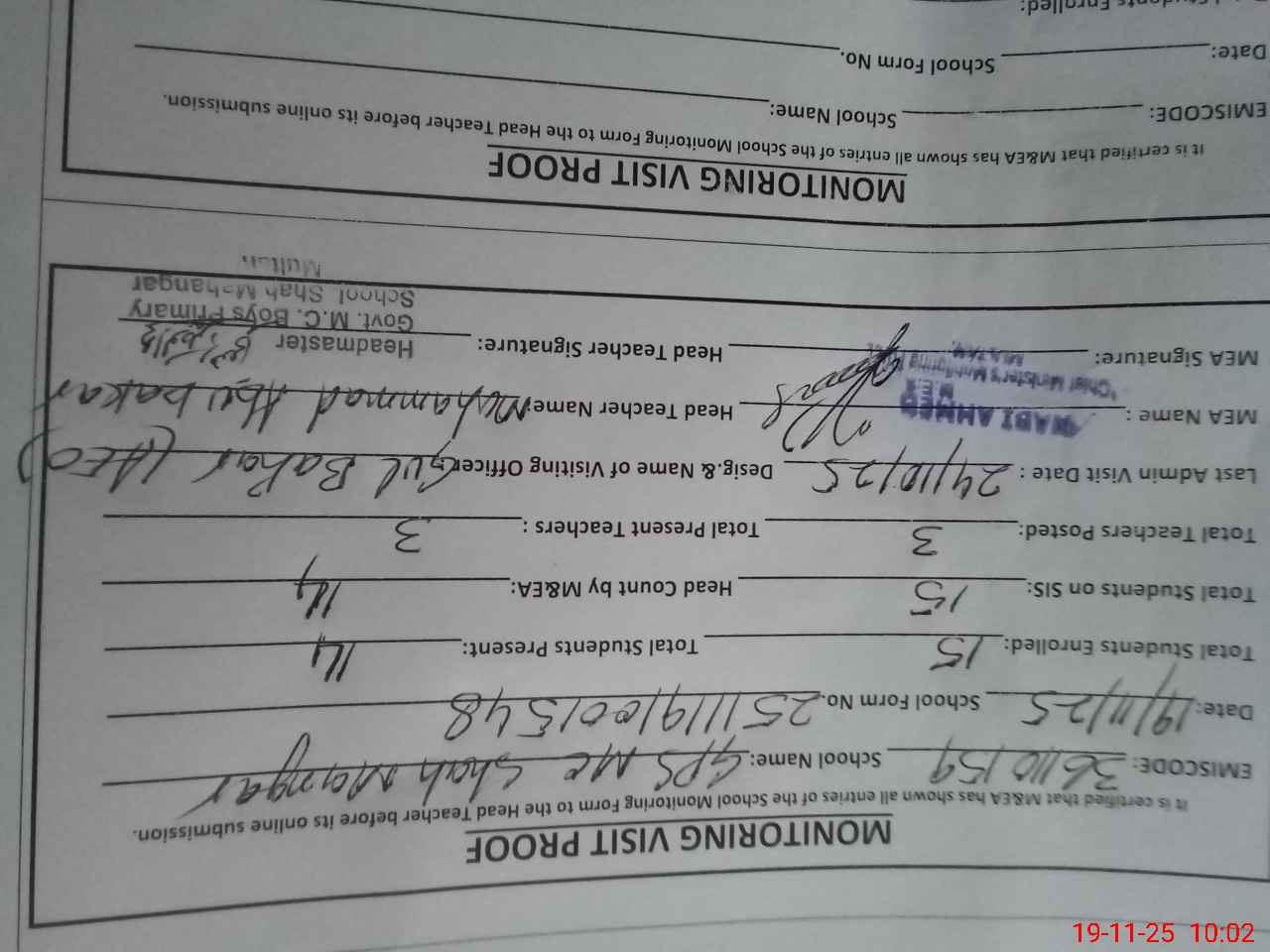 | EMIS Code: 36110159 | Name of School: GPS MC SHAH MAHINGAR INSIDE BOHAR GATE | |||