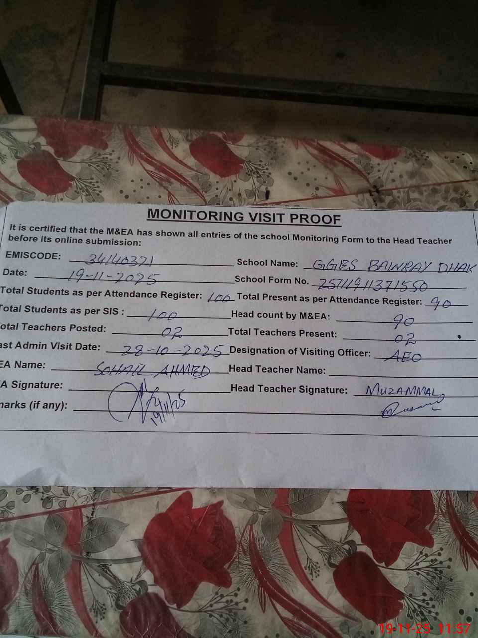 | EMIS Code: 34140321 | Name of School: GGES BAWRAY DHAK | |||
