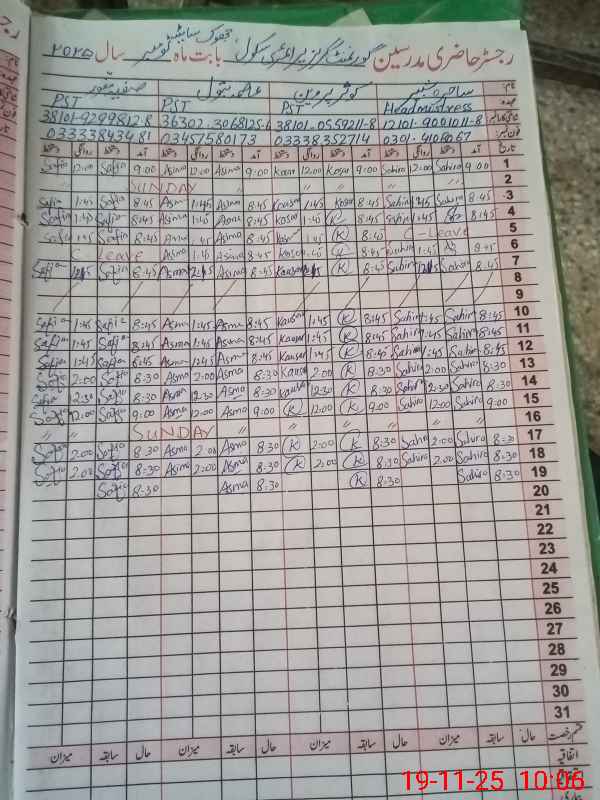| Name: SA**** SH**** Designation: (School Headmaster's/Headmistress's) PST Phone/Cell Number: 03**** |