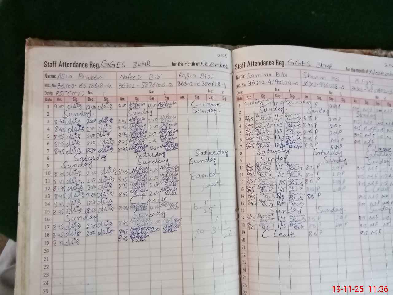 | CNIC | Full Name | Designation | R/C | Absence During Last Calender Month |