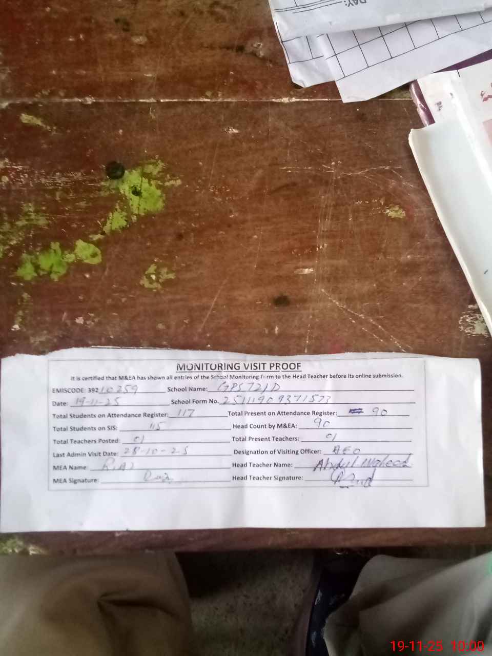 | EMIS Code: 39210259 | Name of School: GPS CHAK NO. 72 D | |||