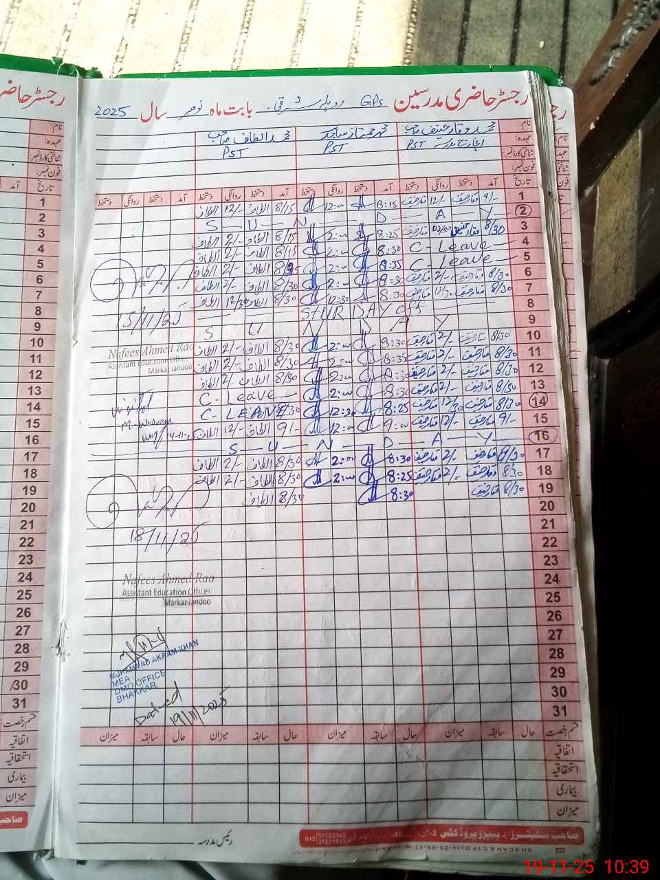 | Remarks (Use Separate Page if Required): Dy DEO visit on 3 October 2025 and last visit of AEO Nafees Ahmad Rao on 18 November 2025 and NSB and FTF record not maintain | |||||