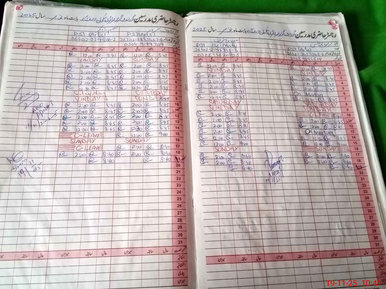 | CNIC | Full Name | Designation | R/C | Absence During Last Calender Month |