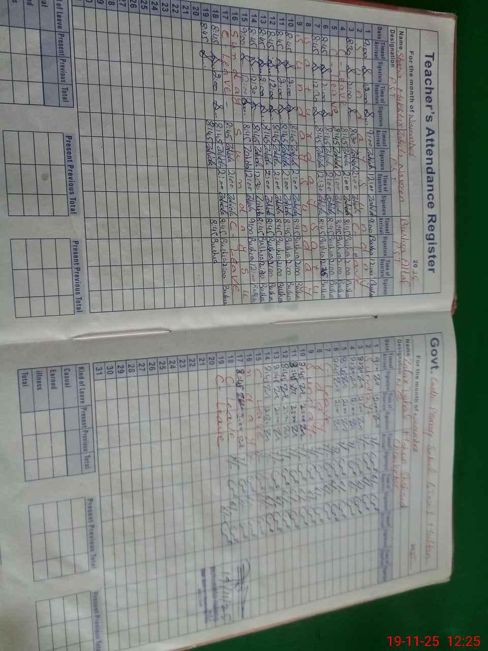 | CNIC | Full Name | Designation | R/C | Absence During Last Calender Month |