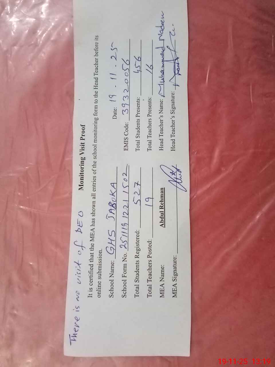 | Certified that this School was Inspected by the Undersigned MEA/DMO Today and the Information Stated Above is as Per Record. | |||||