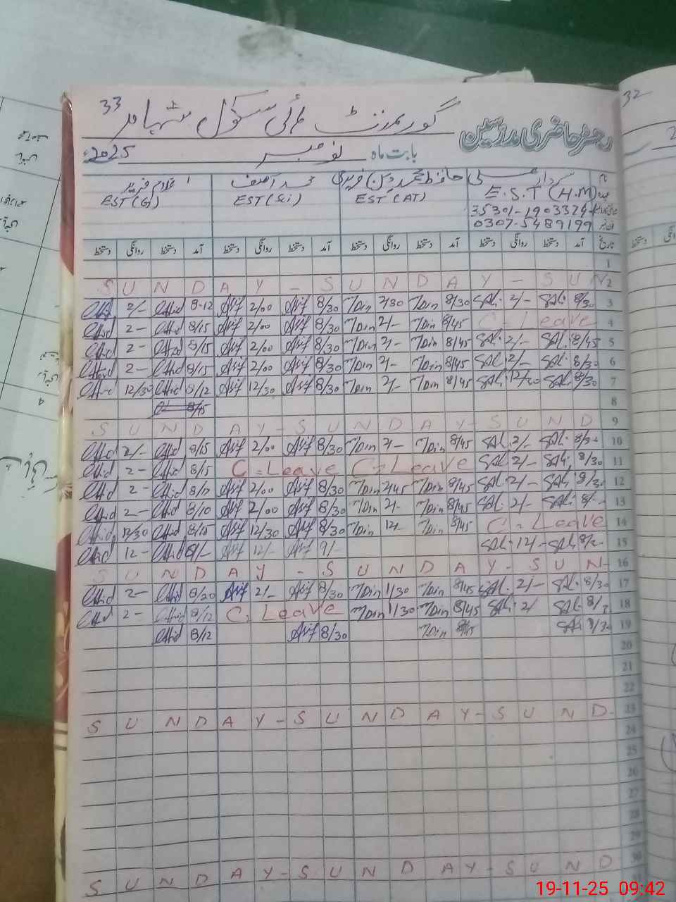 | CNIC | Full Name | Designation | R/C | Absence During Last Calender Month |