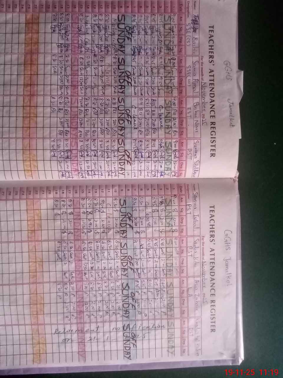 | CNIC | Full Name | Designation | R/C | Absence During Last Calender Month |