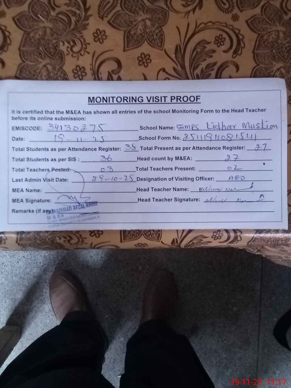 | EMIS Code: 34130275 | Name of School: GMPS LIDHARR MUSLIM | |||