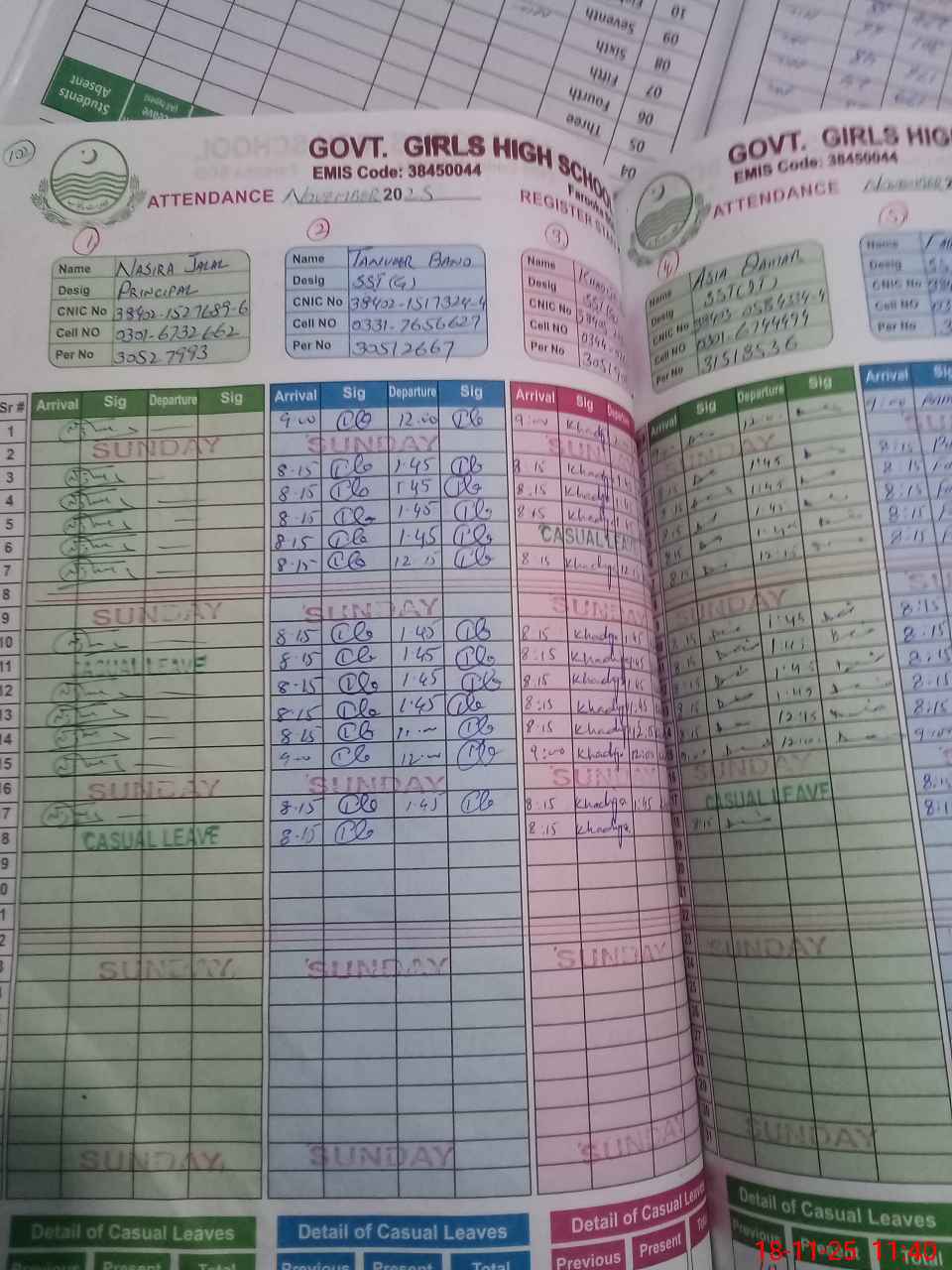 | CNIC | Full Name | Designation | R/C | Absence during last cal. month |