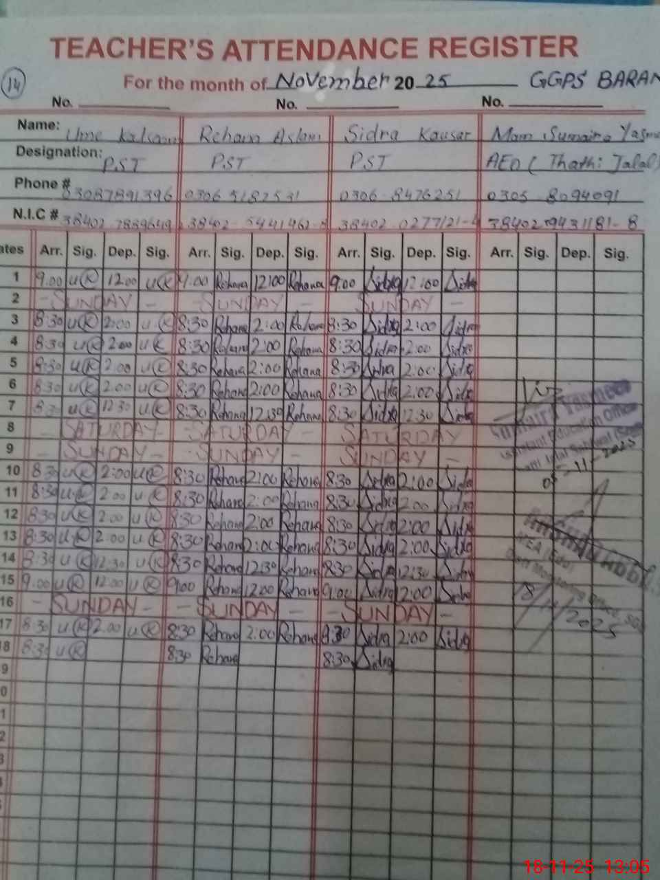 | Name: UM**** KA**** Designation: (School Headmaster's/Headmistress's) PST Phone/Cell Number: 03**** |
