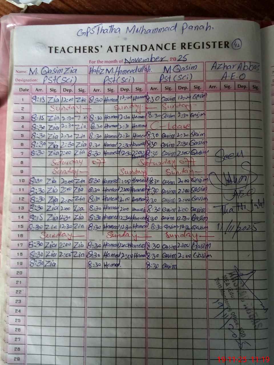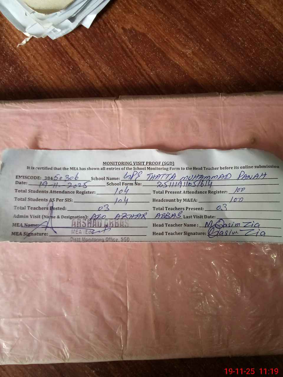 | Attendance Register | Head Teacher | MEA with School | Visit Proof |