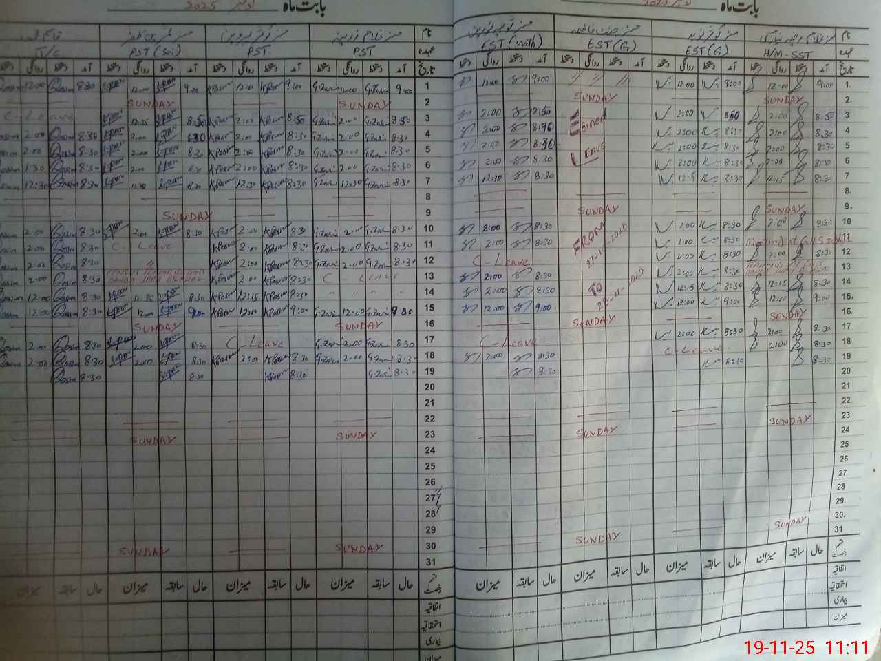 | Remarks (Use Separate Page if Required): Est Janat Fatima shown on earned leave since 27 Oct for 30 days but not yet approved on sis even by the head for further authorization hence marked unauthorized absent | |||||