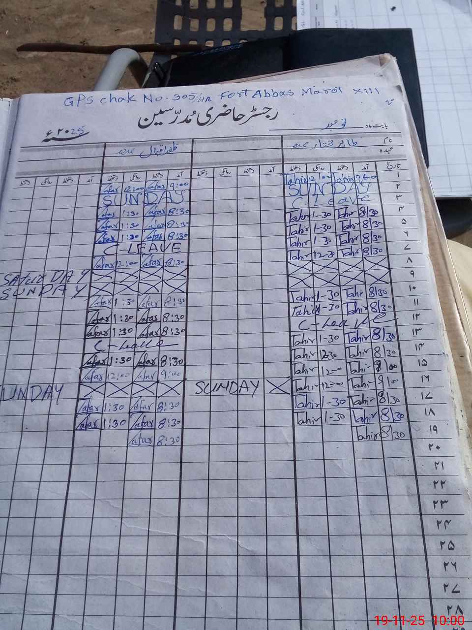 | CNIC | Full Name | Designation | R/C | Absence During Last Calender Month |