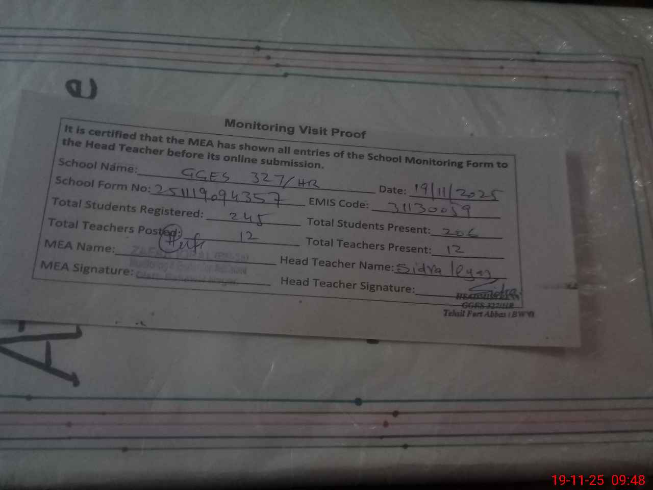 | Certified that this School was Inspected by the Undersigned MEA/DMO Today and the Information Stated Above is as Per Record. | |||||