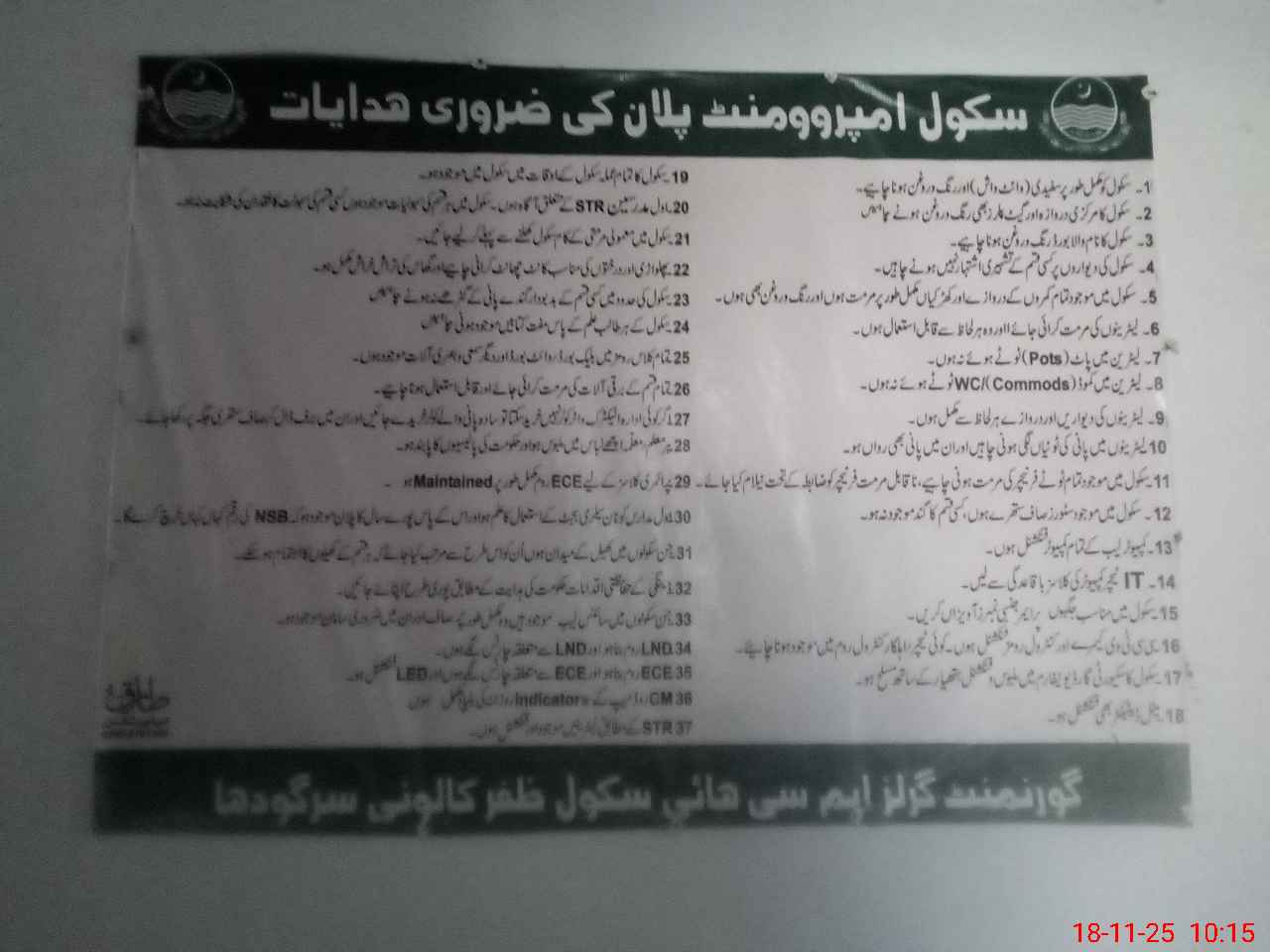 | EMIS Code: 38420215 | Name of School: GGHS MC ZAFAR COLONY SARGODHA | |||