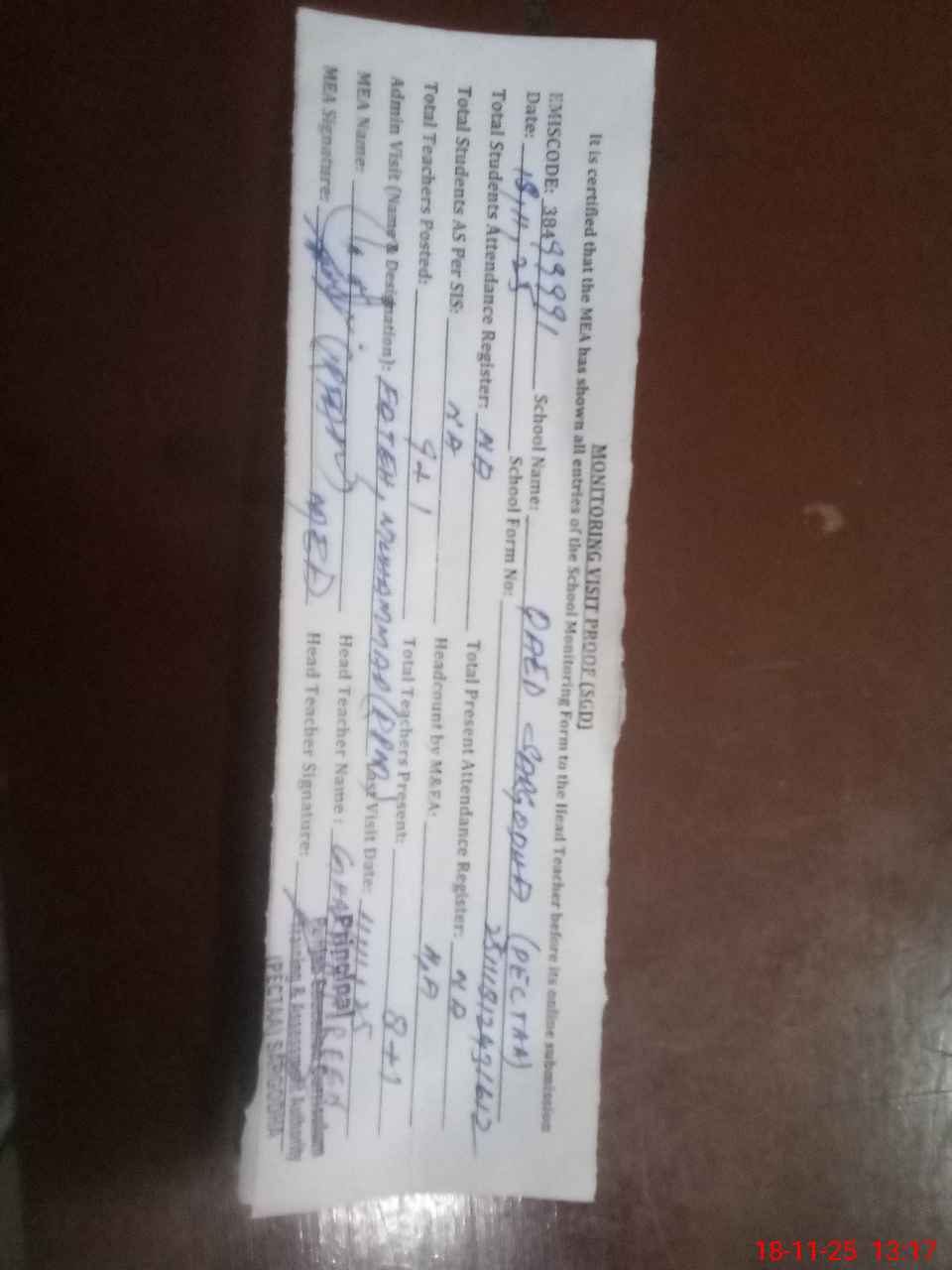 | Certified that this School was Inspected by the Undersigned MEA/DMO Today and the Information Stated Above is as Per Record. | |||||