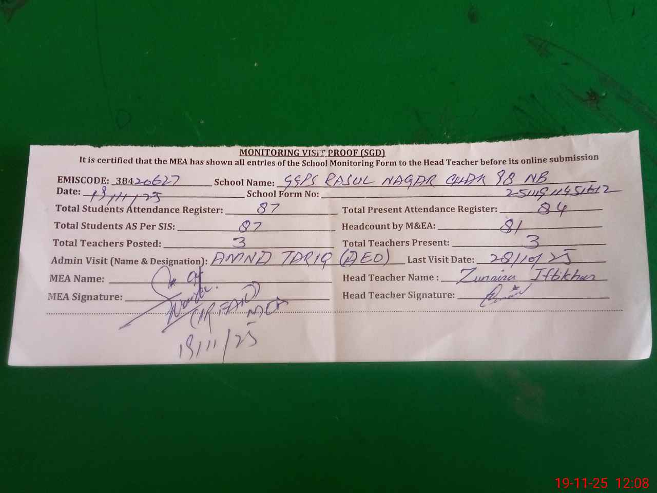 | EMIS Code: 38420627 | Name of School: GGPS RASUL NAGAR CHAK NO.98 NB | |||
