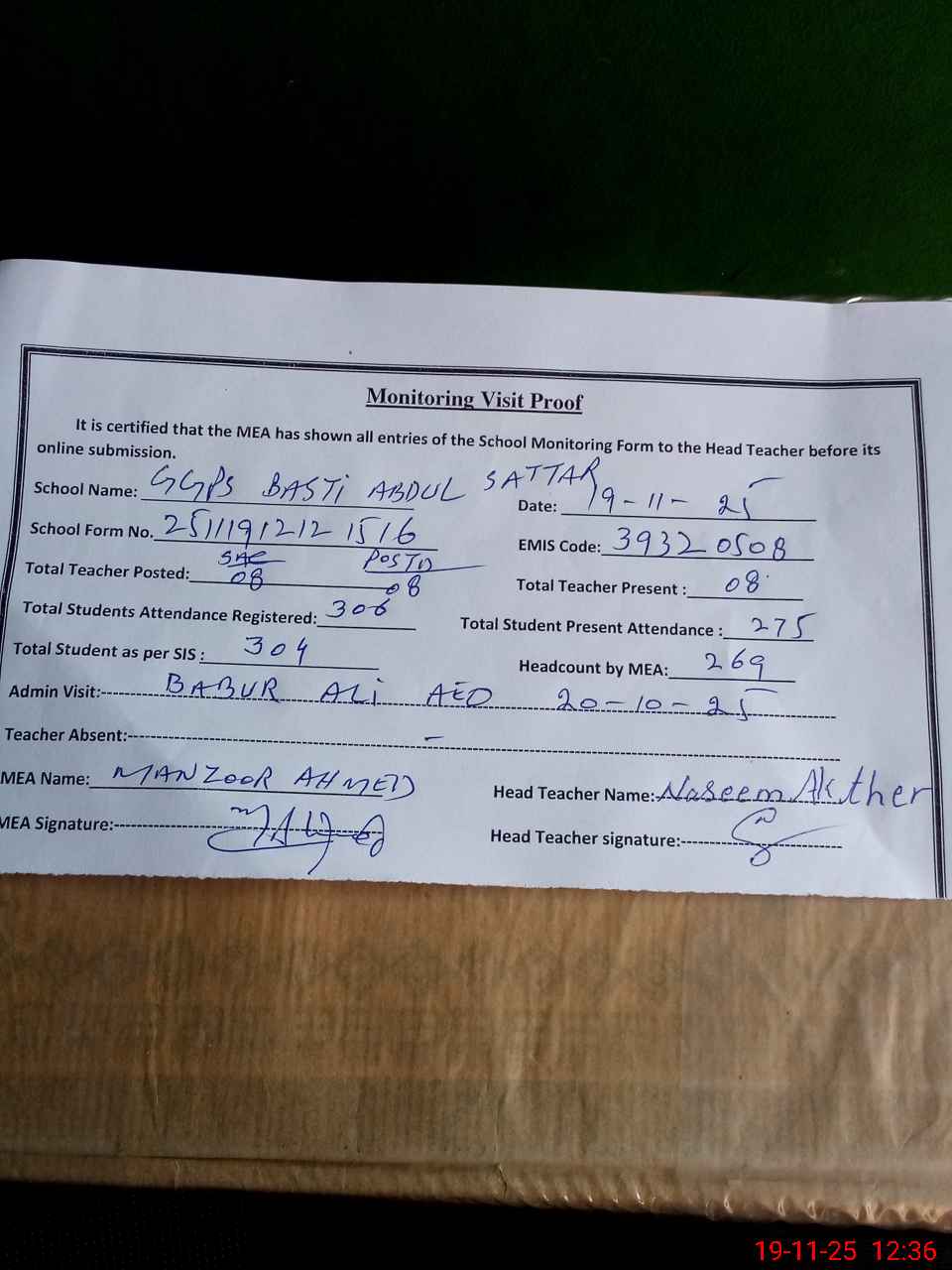 | EMIS Code: 39320508 | Name of School: GGPS BASTI ABDUL SATTAR | |||