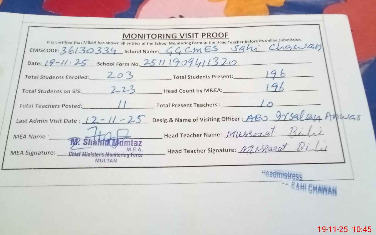 | EMIS Code: 36130334 | Name of School: GGCMES SAHI CHAWAN P/O AILAM PUR | |||