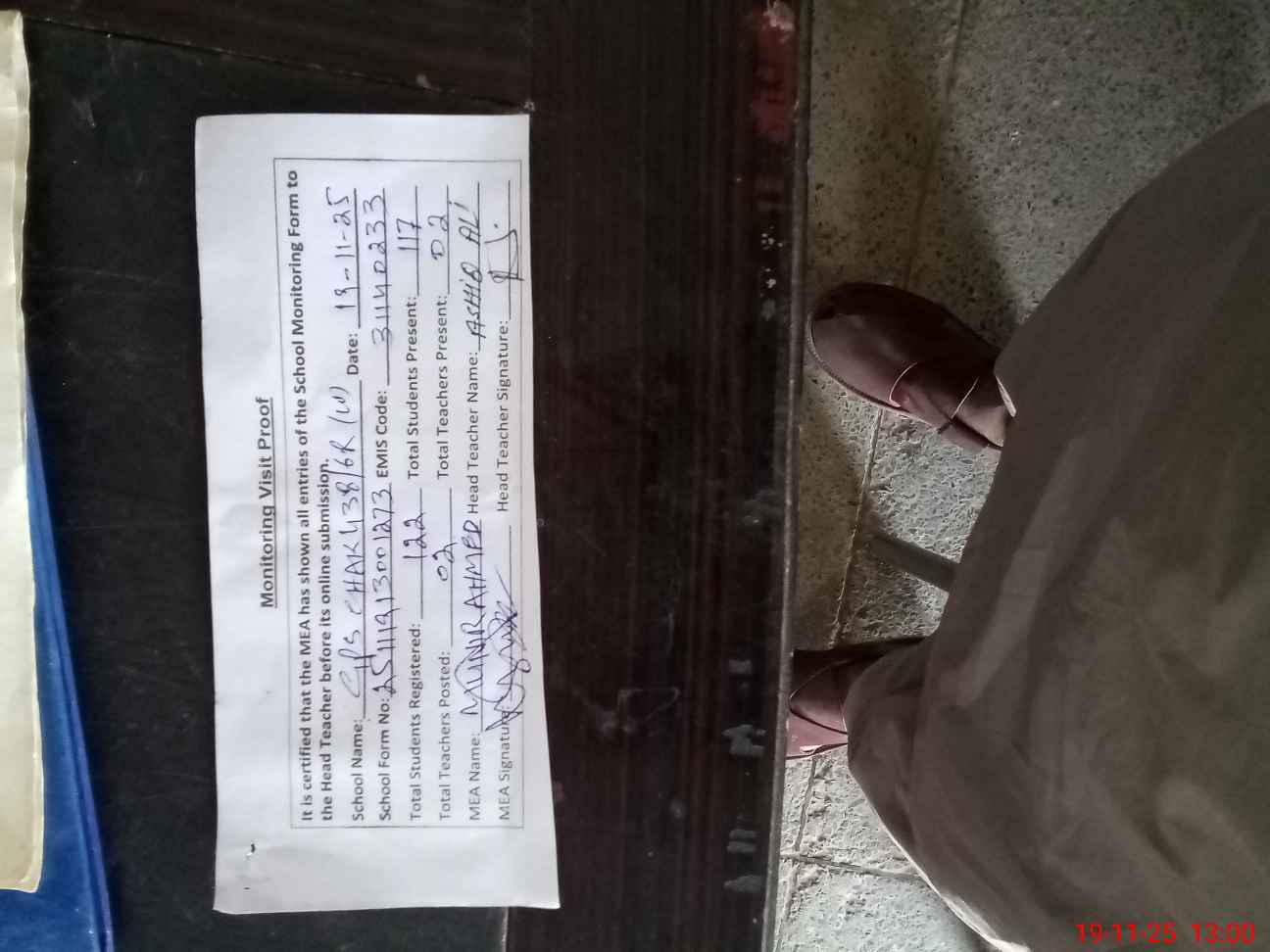 | Attendance Register | Head Teacher | MEA with School | Visit Proof |