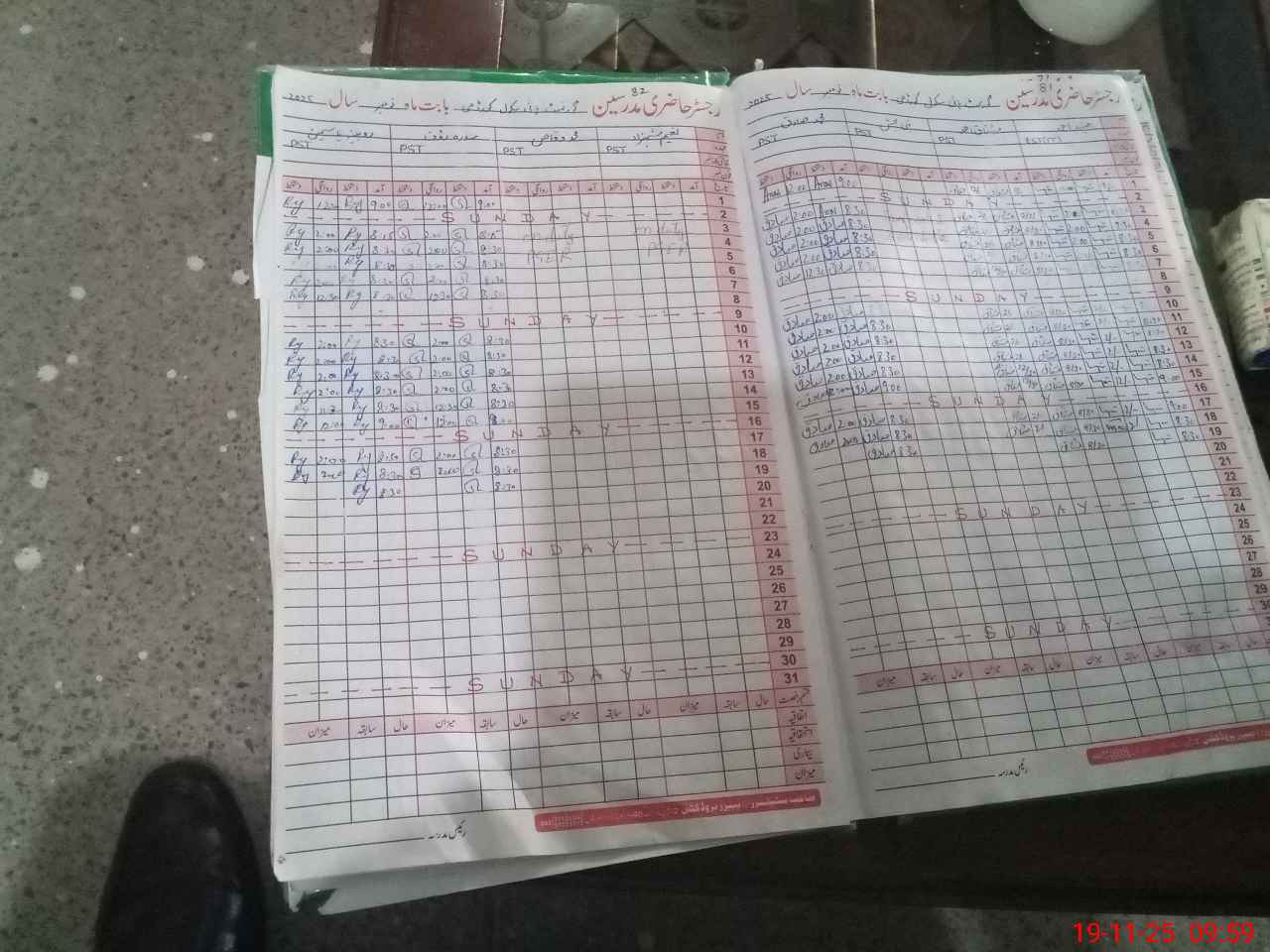 | CNIC | Full Name | Designation | R/C | Absence During Last Calender Month |