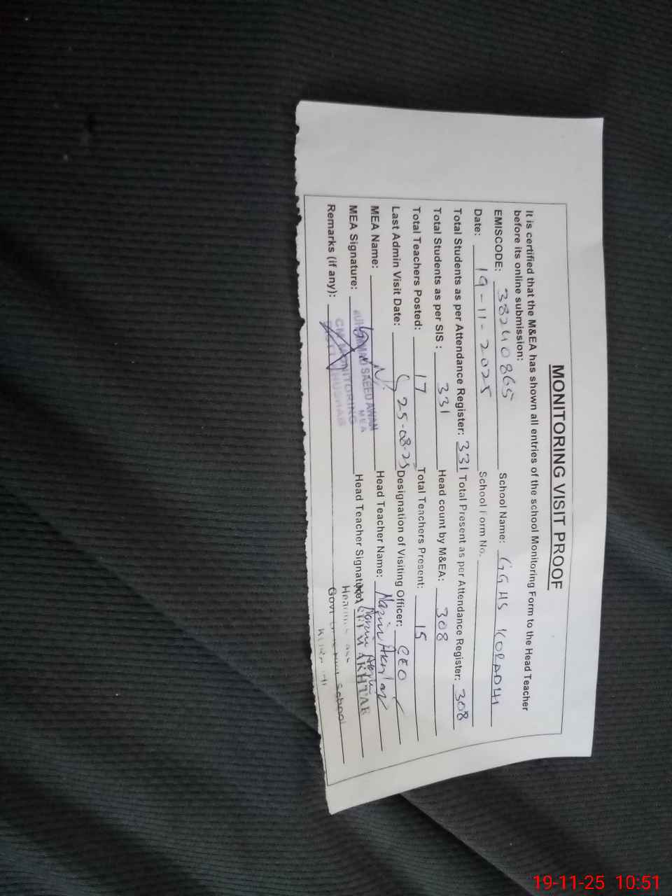| Remarks (Use Separate Page if Required): Students on SIS QTY 331 Last admin visit On 25 August 2025 by CEO | |||||